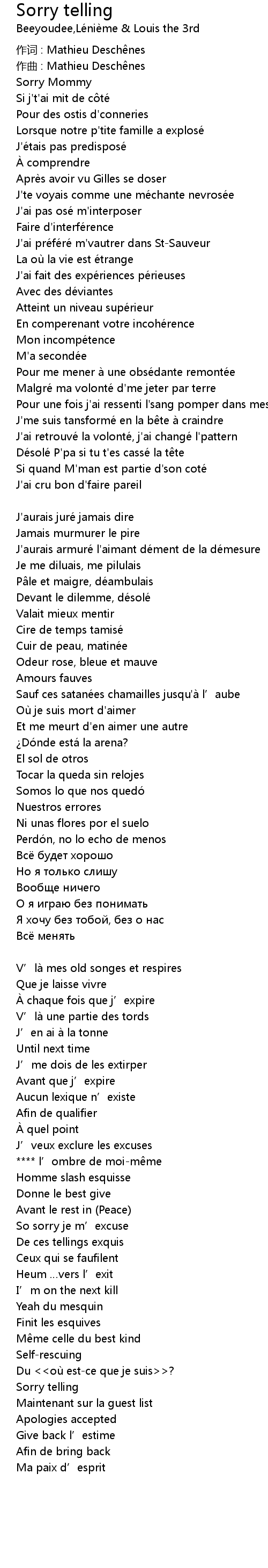 | 作词 : Mathieu Deschênes | |