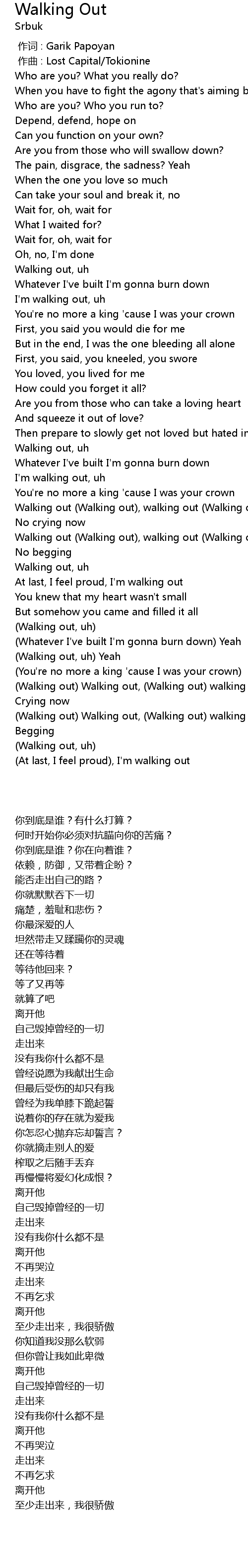 | [02:42.170] | (Walking out) Walking out, (Walking out) walking out |