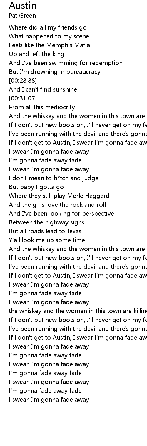 [03:01.65] If I don't get to Austin, I swear I'm gonna fade away