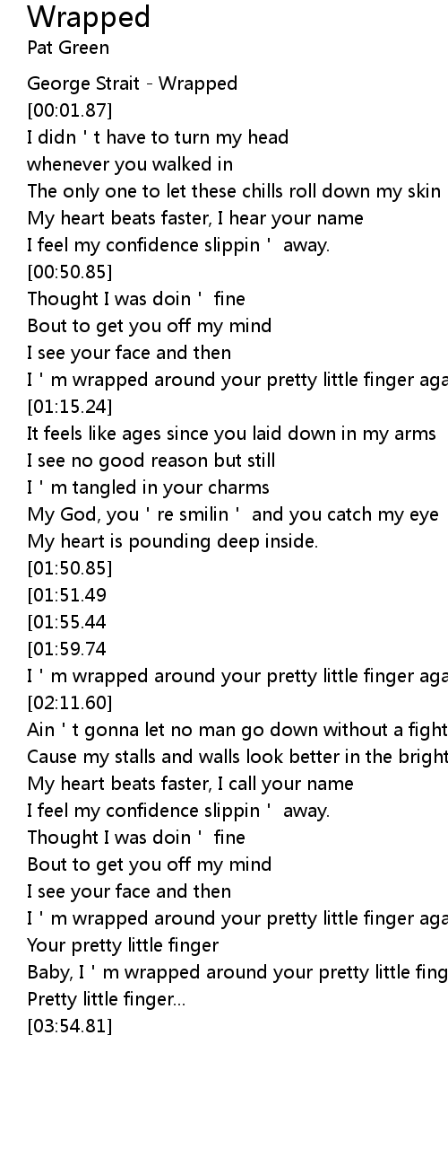 | [03:35.58] | Baby, I m wrapped around your pretty little finger again |
