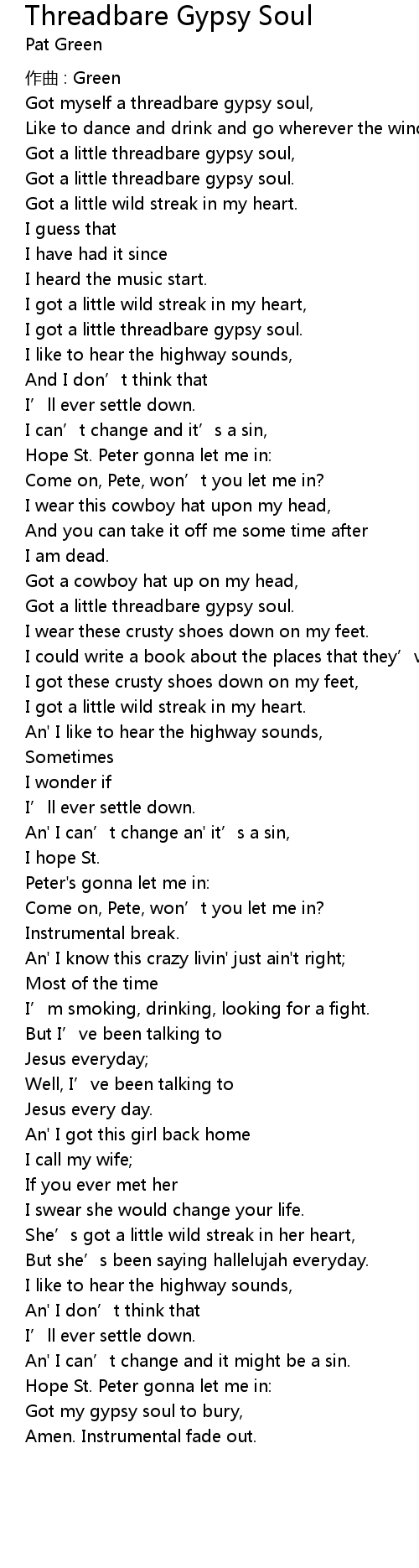 | I got a little threadbare gypsy soul. | |