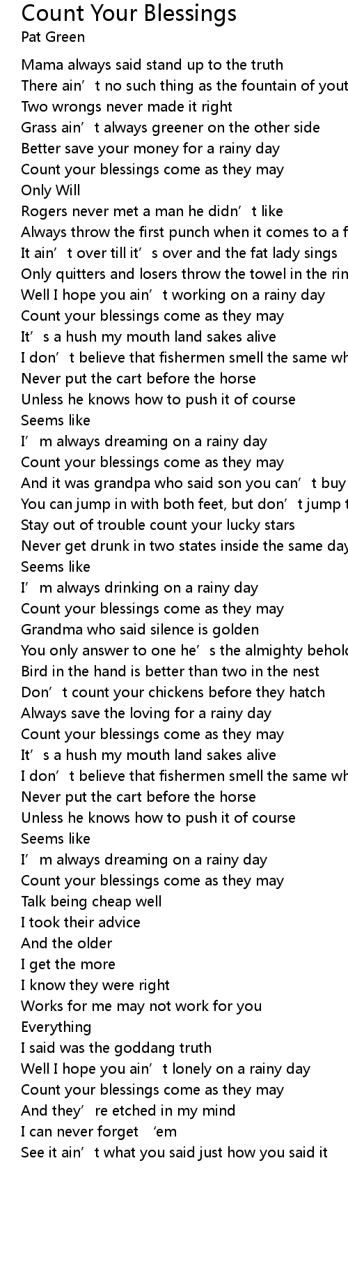 | Count your blessings come as they may | |