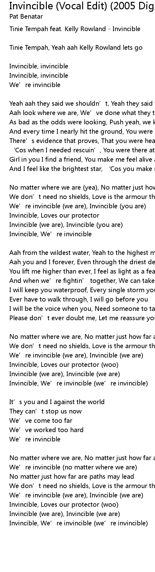| We' re invincible we are, Invincible you are | |