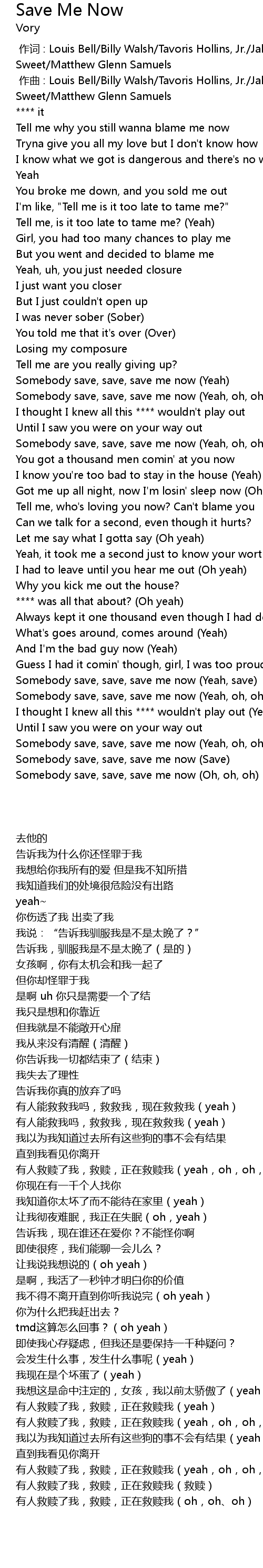 | [01:10.29] | Somebody save, save, save me now (Yeah, oh, oh, oh) |