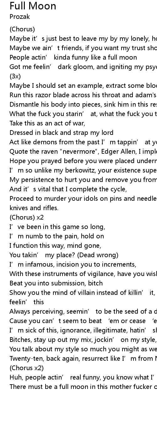 | Got me feelin' dark gloom, and igniting my psycho just like some gas fumes 3x | |