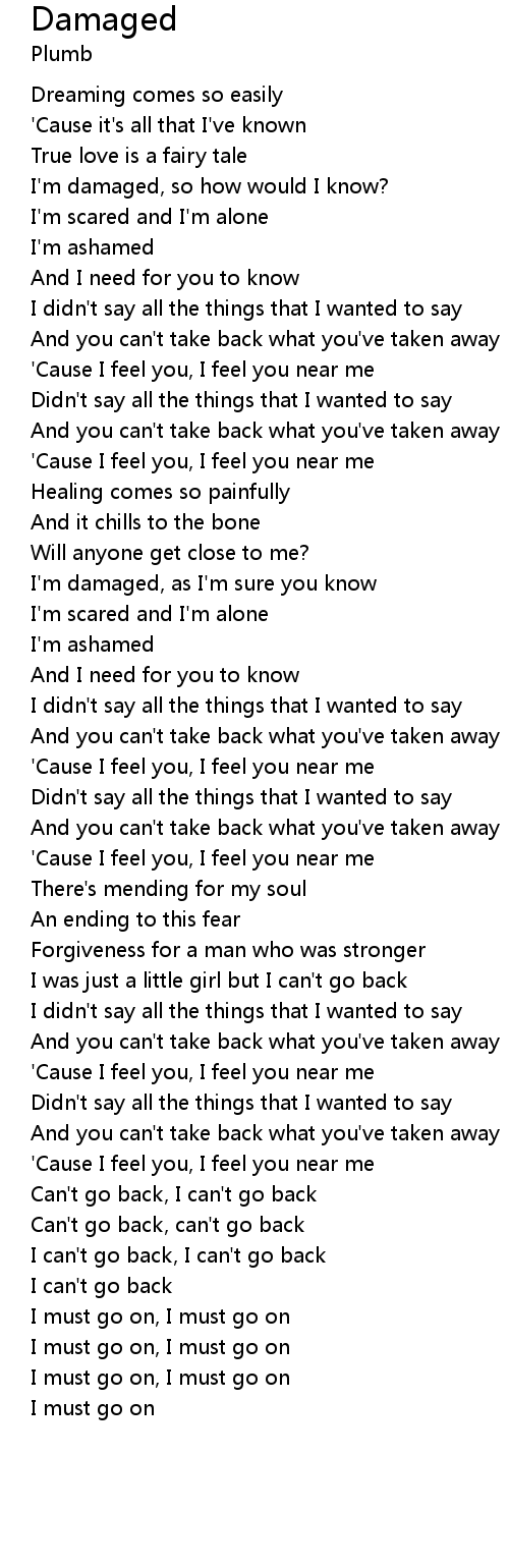 I'm damaged, as I'm sure you know |