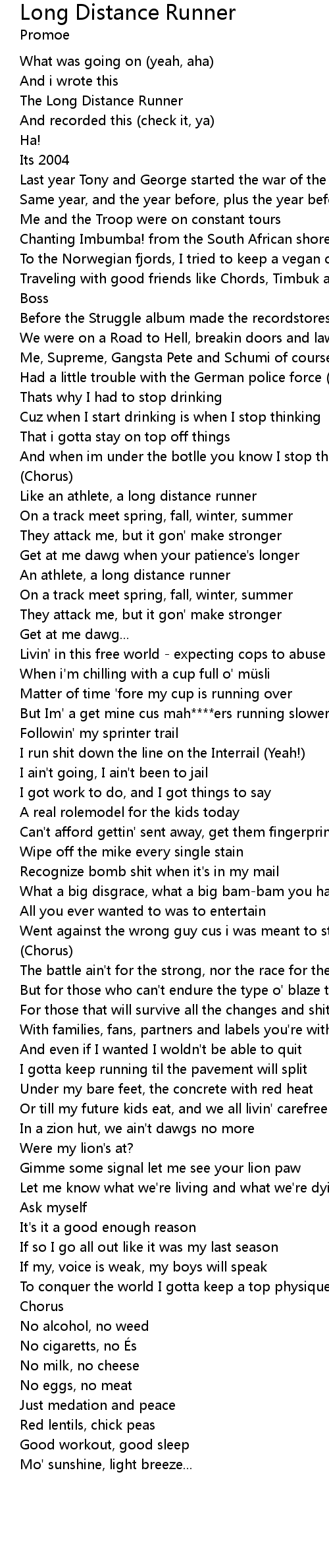 | 歌曲 | Long Distance Runner |