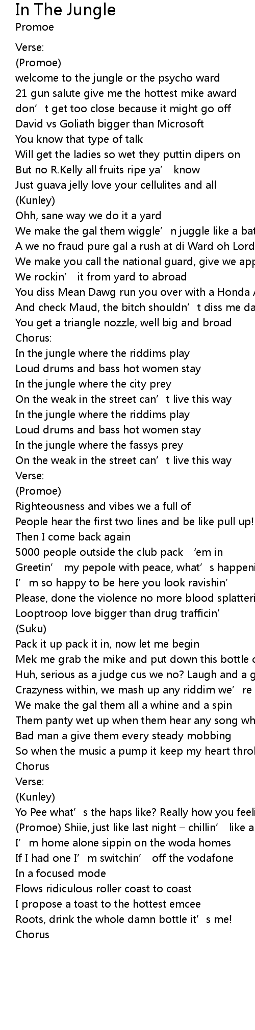| 歌曲 | In The Jungle |