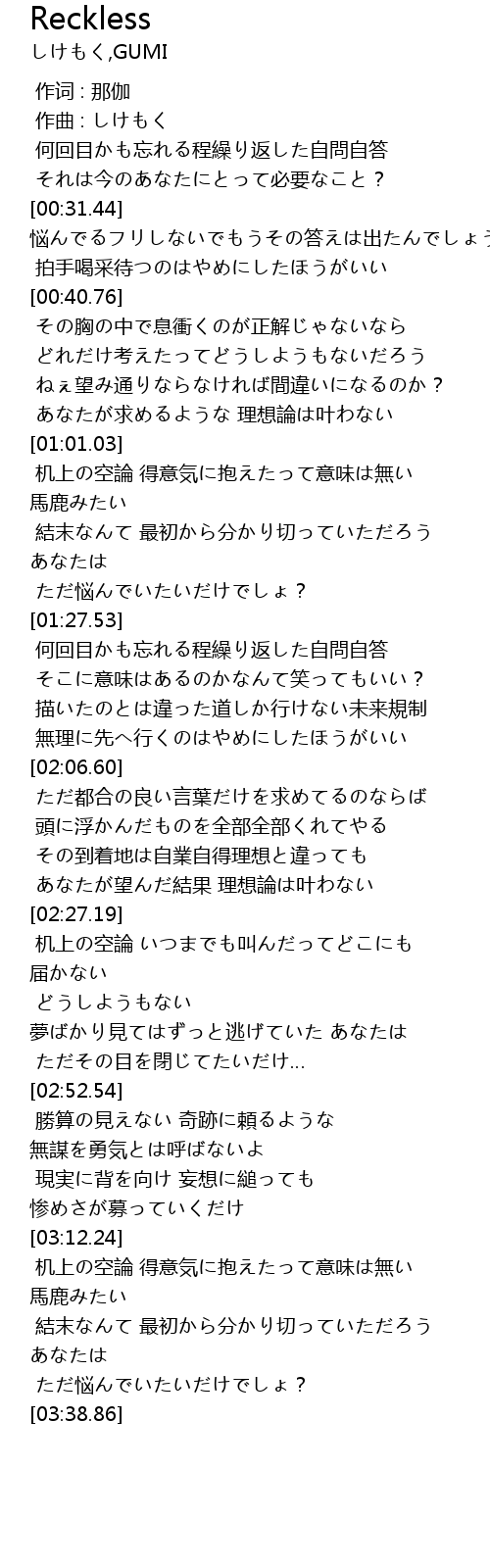 | [02:22.31] | あなたが望んだ結果 理想論は叶わない |