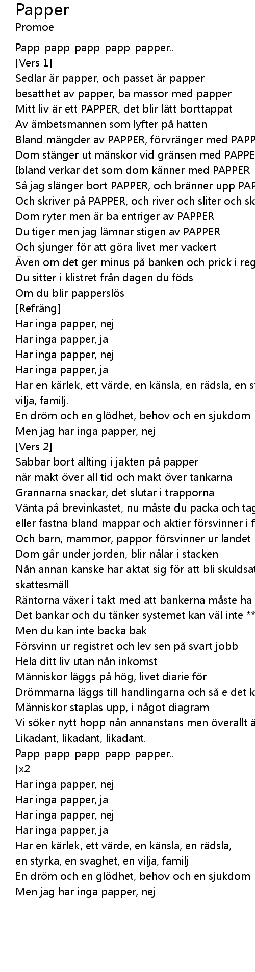 | Och skriver p PAPPER, och river och sliter och skiter i PAPPER | |