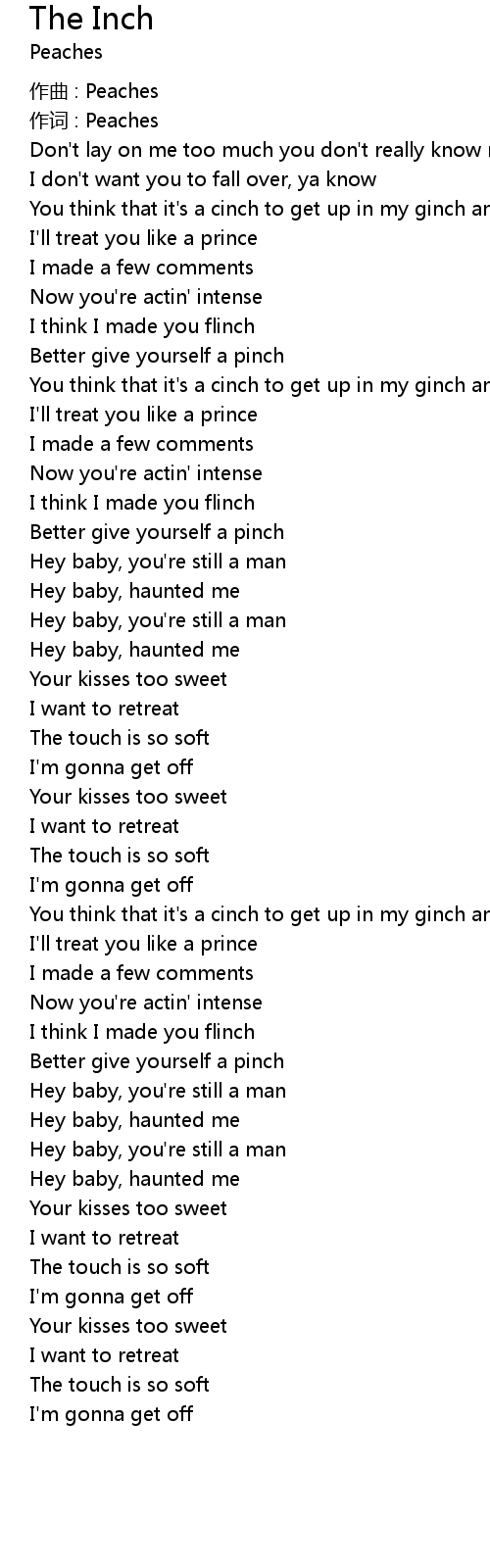 | You think that it' s a cinch to get up in my ginch and if you' ve got the inch then | |