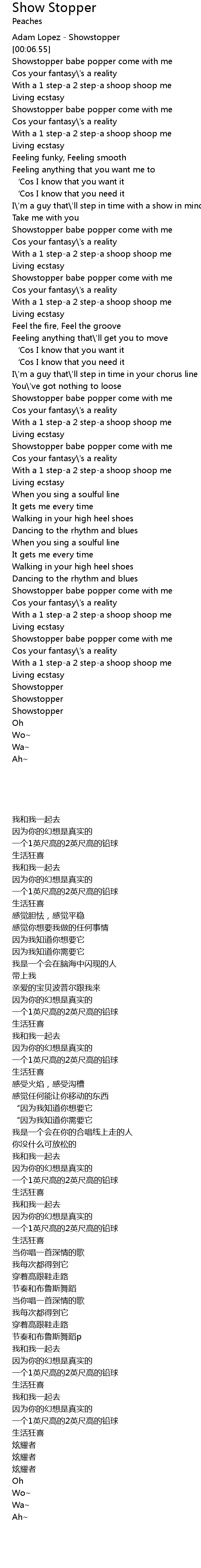 | [00:18.44] | Showstopper babe popper come with me |