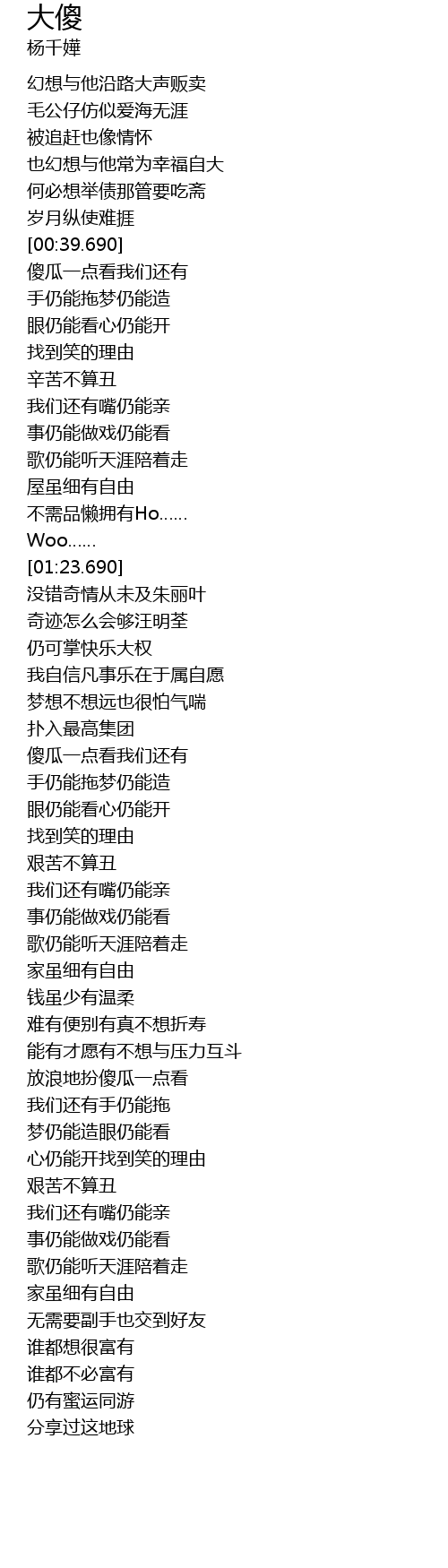 | [00:40.220] | 傻瓜一点看我们还有 |