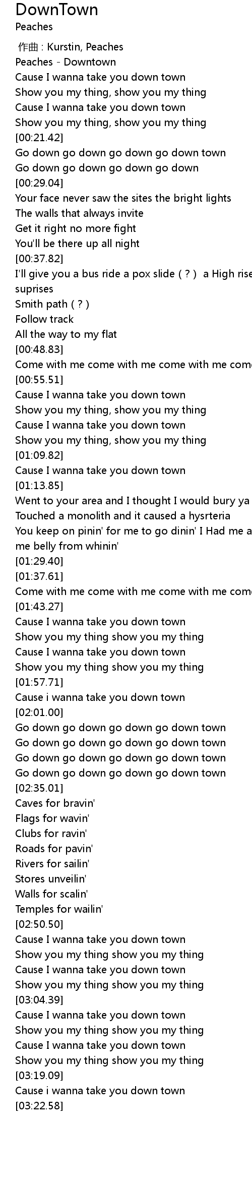 | [00:00.61] | Peaches - Downtown |