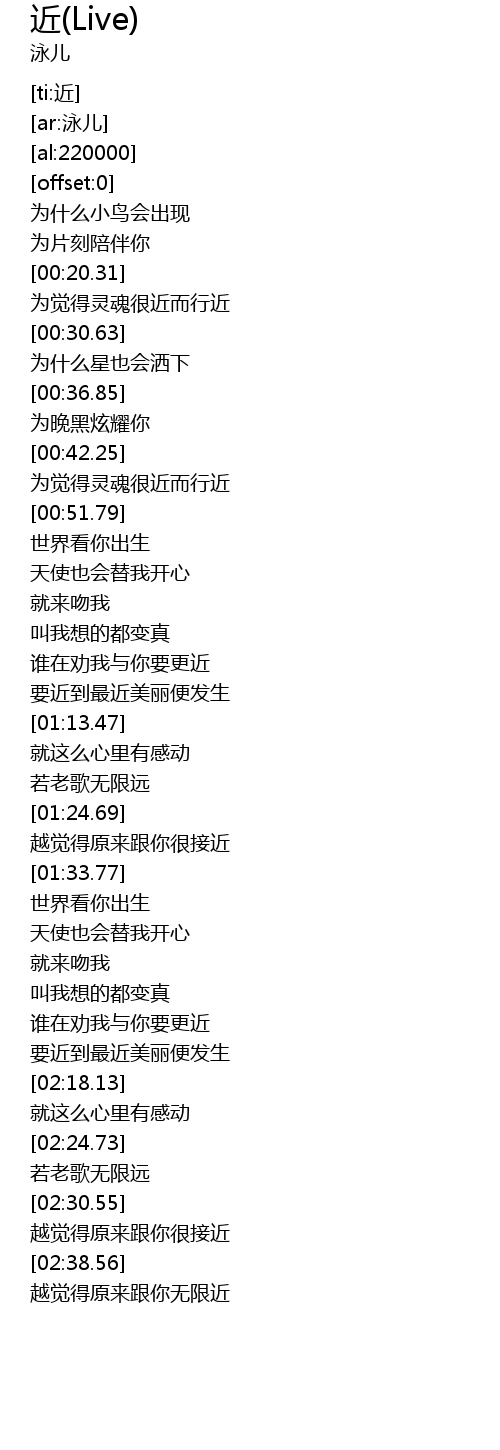 | [02:12.02] | 要近到最近美丽便发生 |