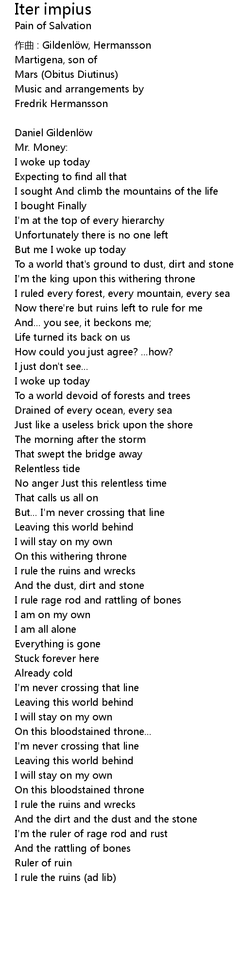 | I rule the ruins ad lib |