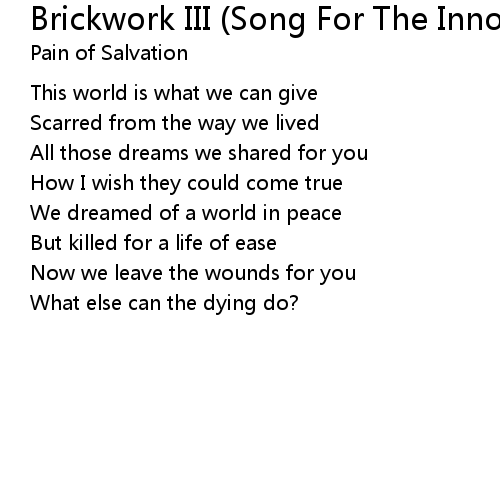 | 歌曲 | Brickwork III (Song For The Innocent T5) |