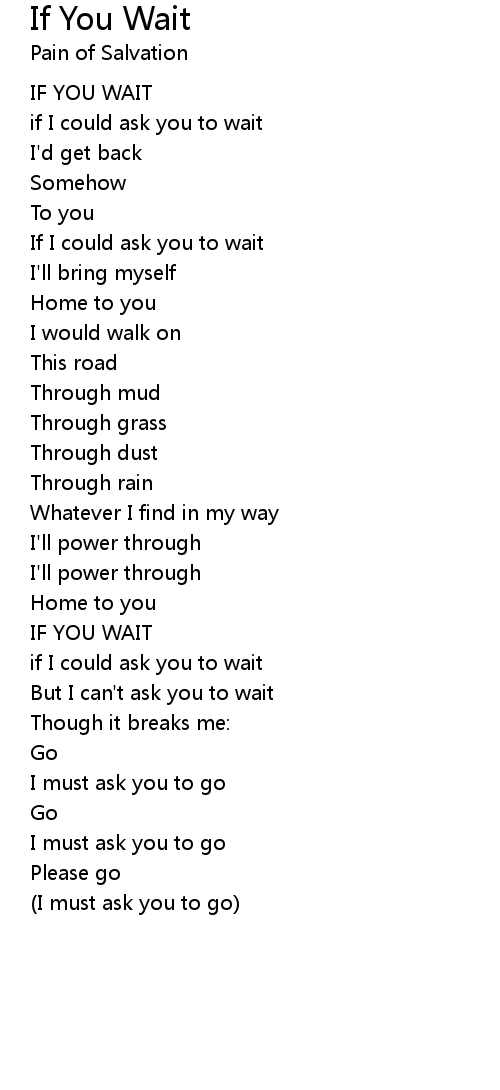| IF YOU WAIT | |