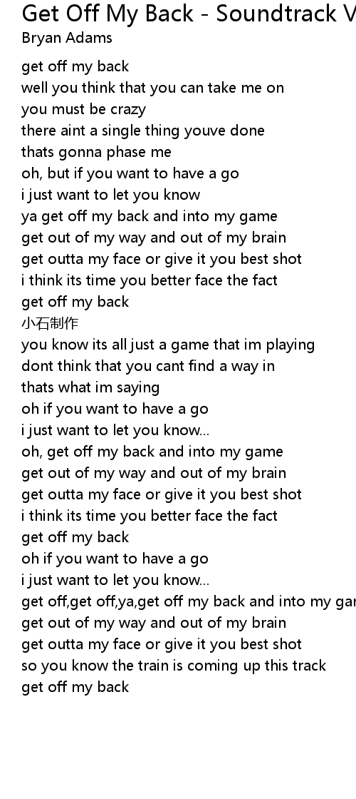 | 歌曲 | Get Off My Back - Soundtrack Version |