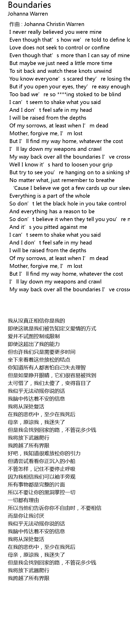 | [04:03.046] | My way back over all the boundaries I’ve crossed |