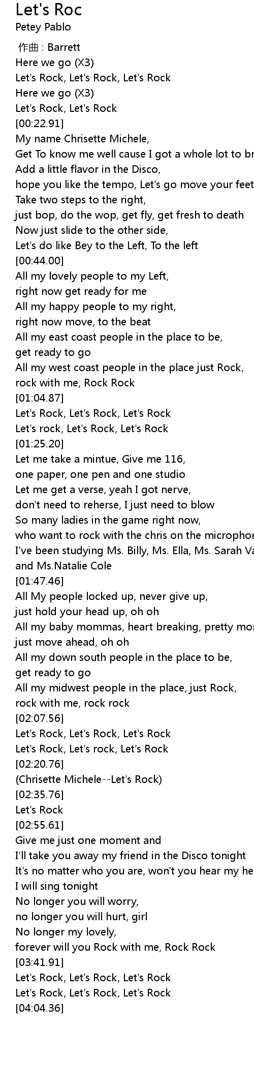 | [02:30.76] | Chrisette MicheleLet' s Rock |
