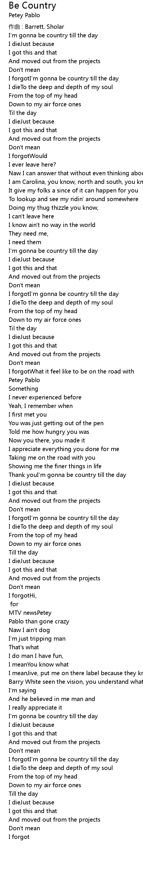 | I forgotI' m gonna be country till the day | |