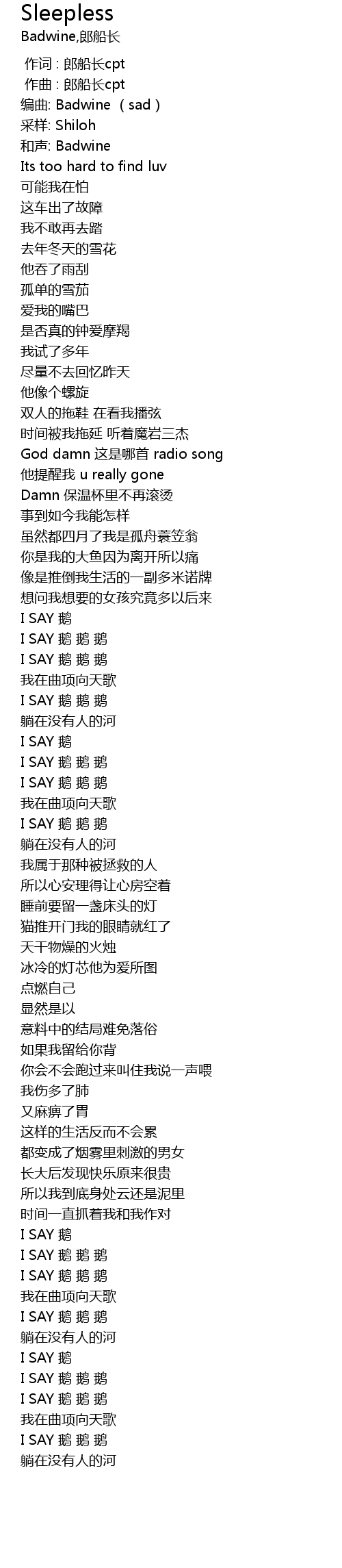 [01:30.30] I SAY 鹅