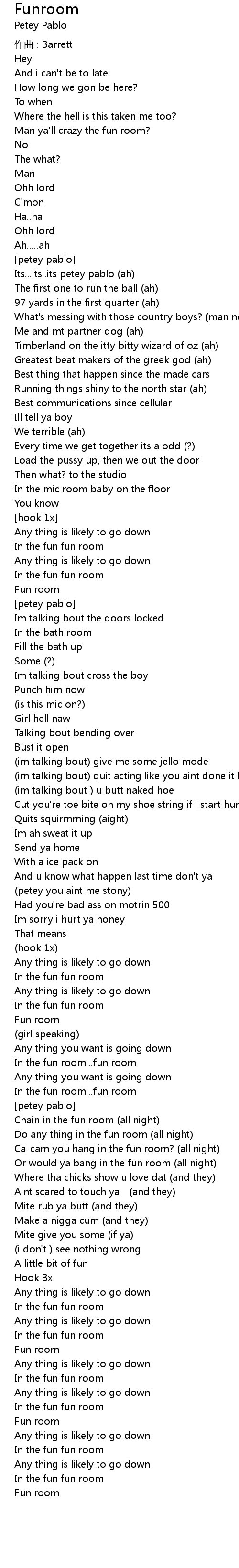 | Or would ya bang in the fun room (all night) | |