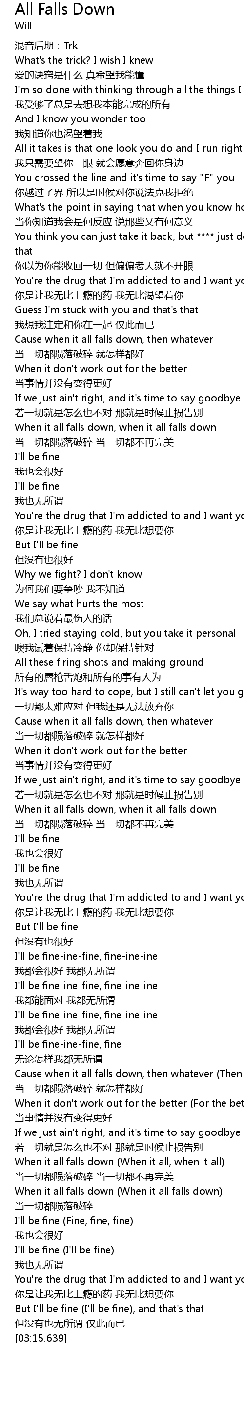 | [02:51.149] | When it all falls down When it all, when it all |