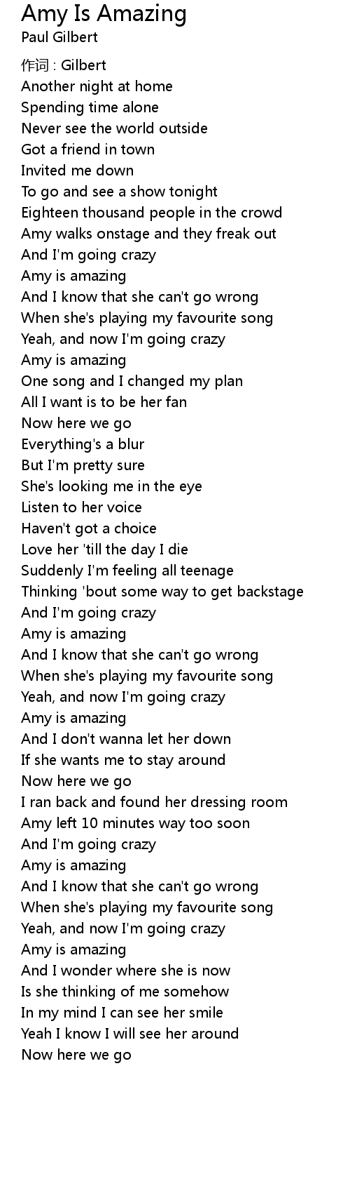 | 歌曲 | Amy Is Amazing |