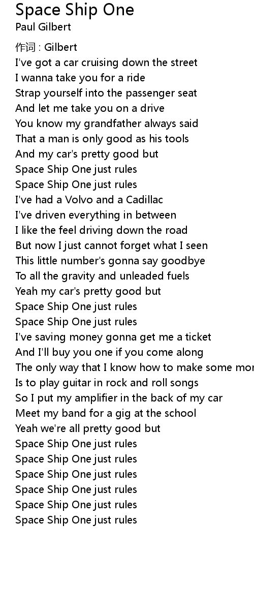 | 歌曲 | Space Ship One |