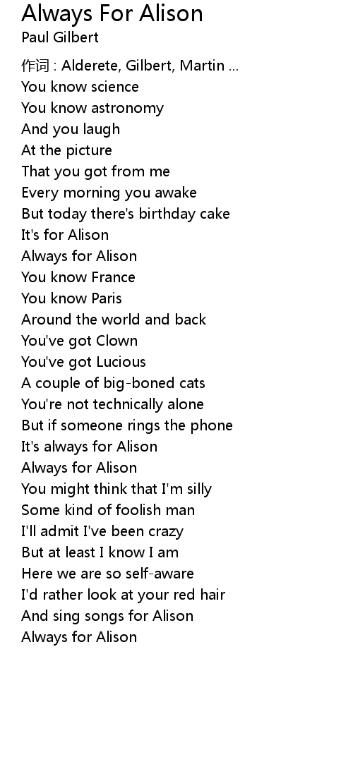 | 歌曲 | Always For Alison |