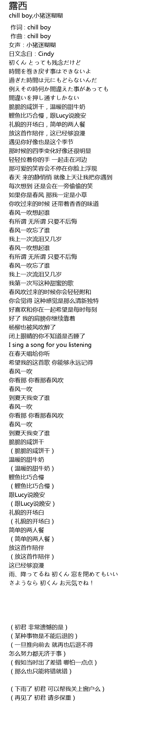| [00:01.08] | 日文念白:Cindy |