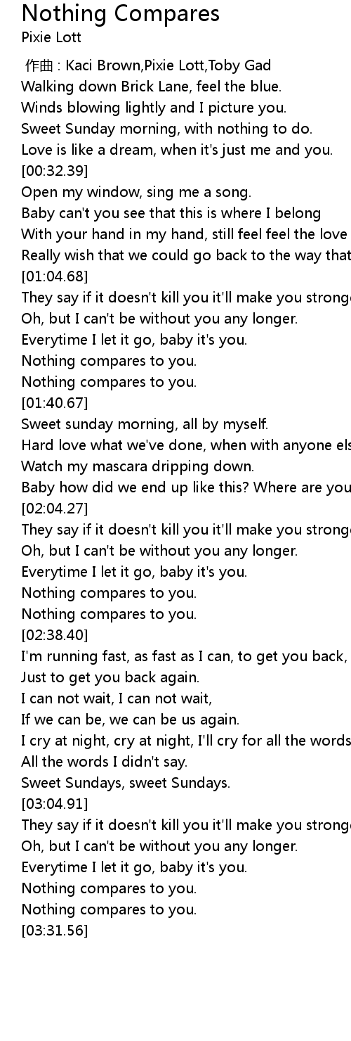 | [02:33.00] | Nothing compares to you. |