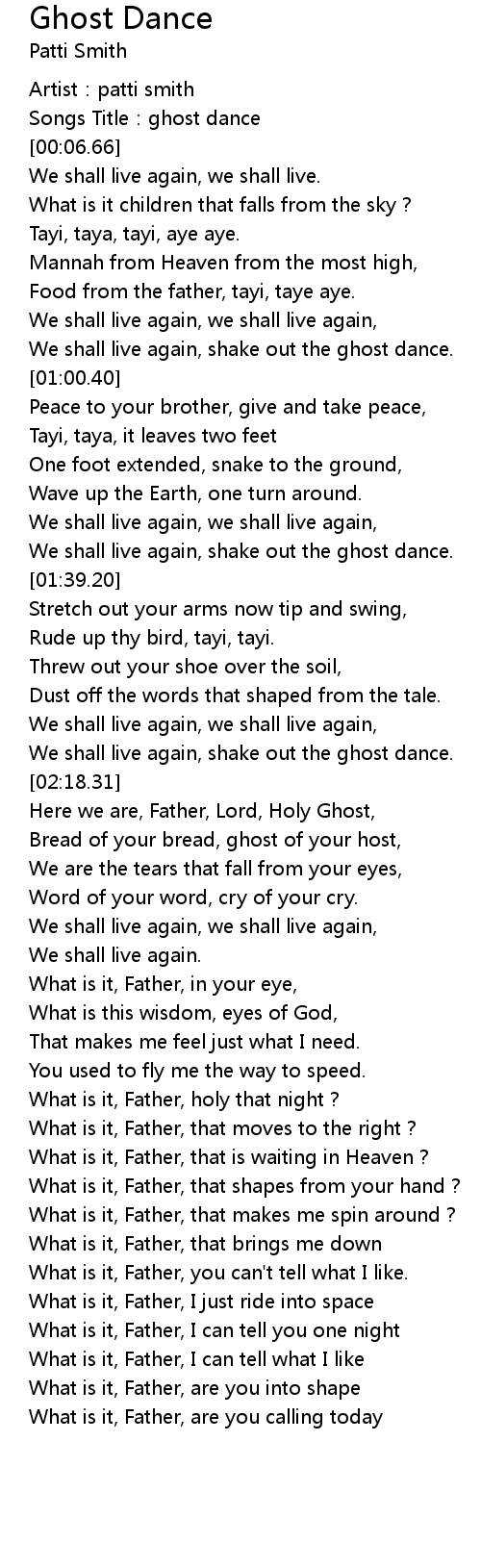 | [00:51.57] | We shall live again, shake out the ghost dance. |