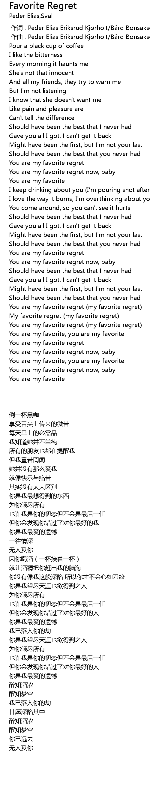 | [02:11.97] | You are my favorite regret (my favorite regret) |