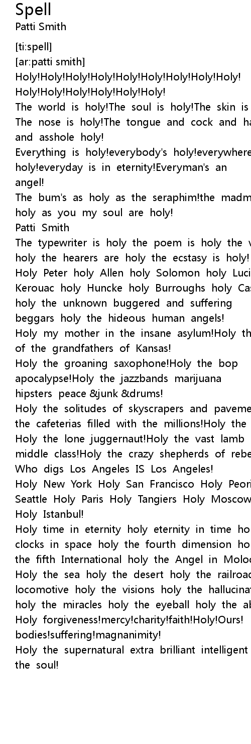 Holy the solitudes of skyscrapers and pavements!Holy |