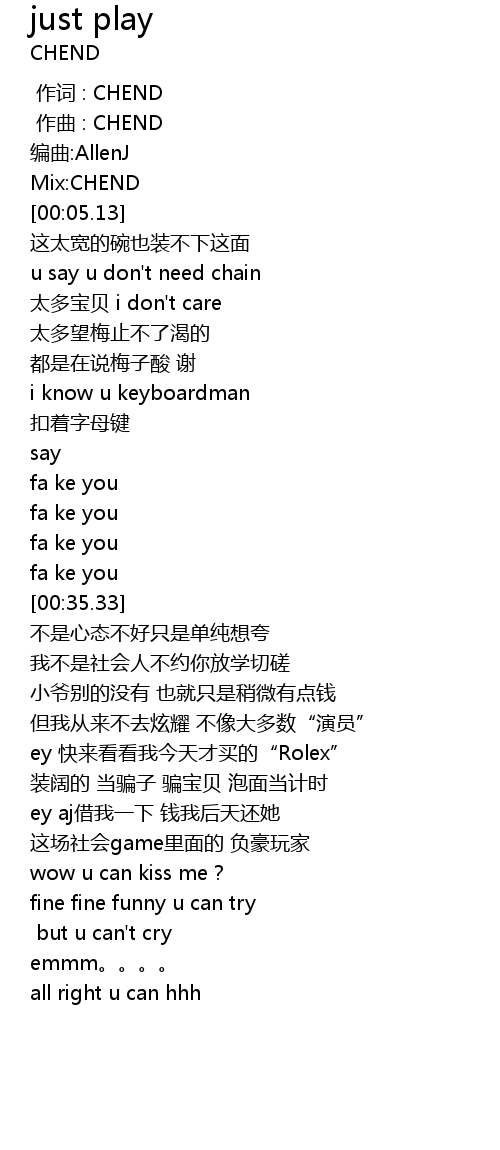 | [00:49.96] | 装阔的 当骗子 骗宝贝 泡面当计时 |