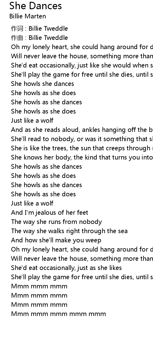 | [00:59.734] | She howls she dances |