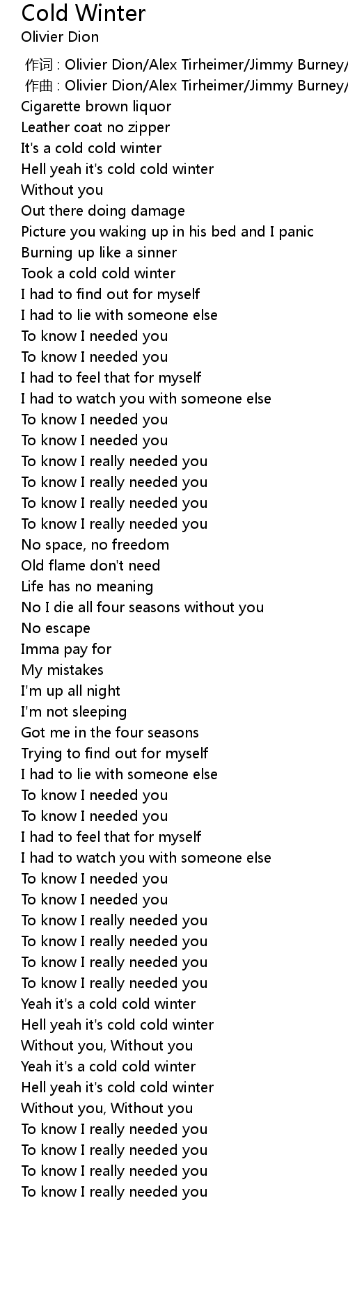 | 歌曲 | Cold Winter |