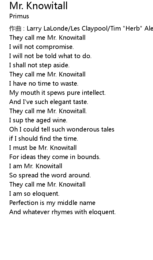 | 歌曲 | Mr. Knowitall |