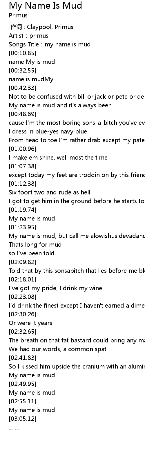 | [02:53.85] | My name is mud |
