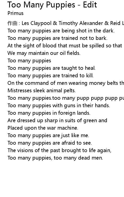 | 歌曲 | Too Many Puppies - Edit |
