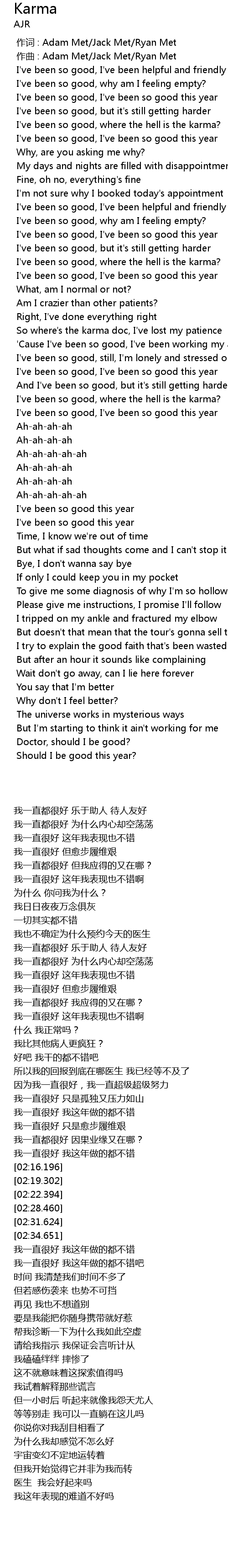 | [02:06.893] | I' ve been so good, where the hell is the karma? |