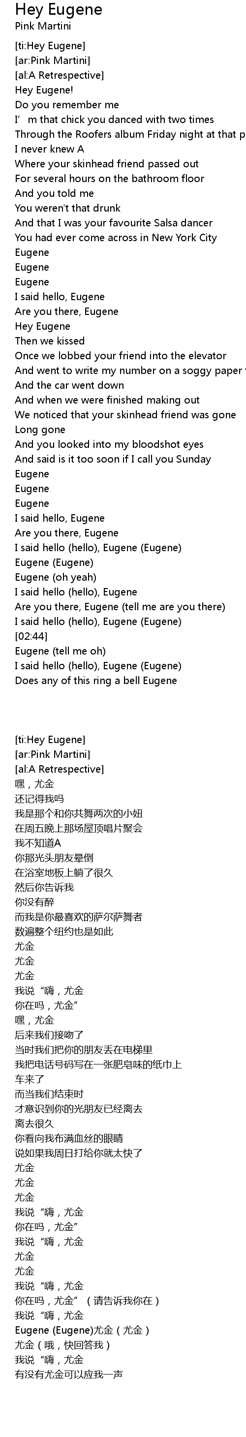 | [ti:Hey Eugene] | |