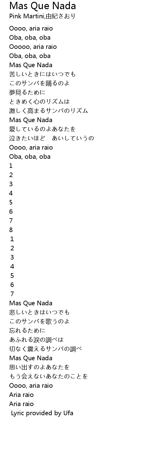 Lyric provided by Ufa |