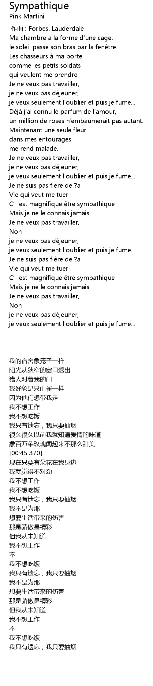 | [02:12.390] | C’est magnifique être sympathique |