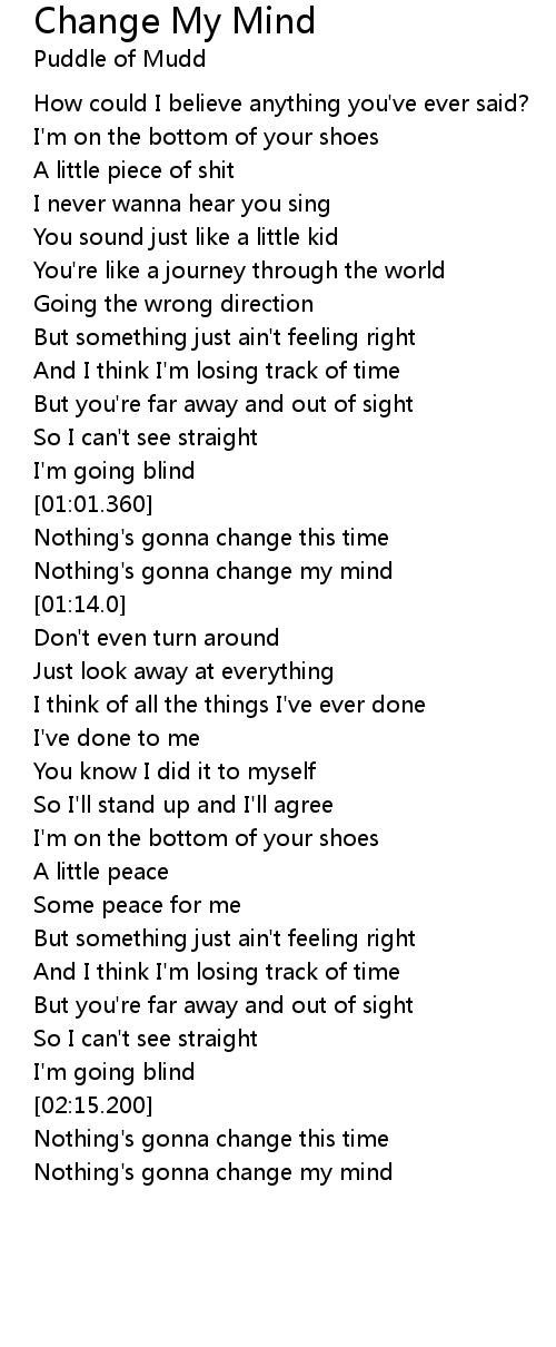 | [02:20.200] | Nothing' s gonna change my mind |