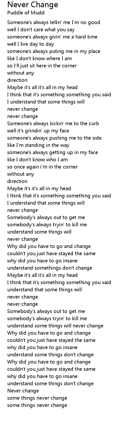 never change |