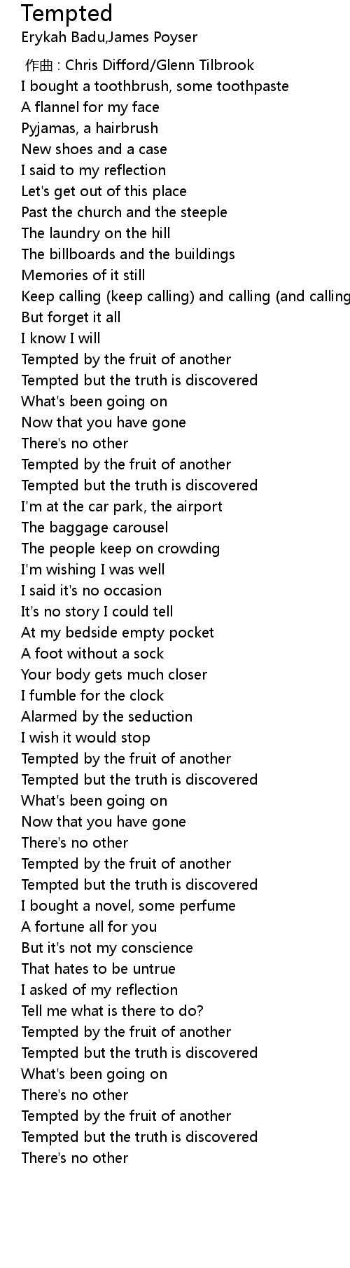 | [03:03.28] | Tempted by the fruit of another |